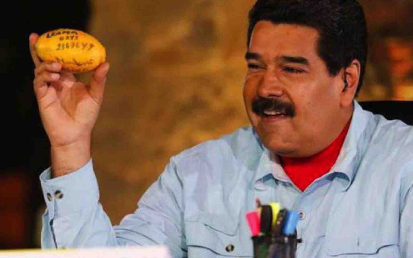 Dövlət televiziyasında canlı yayıma çıxan Maduro meyvəni də özü ilə