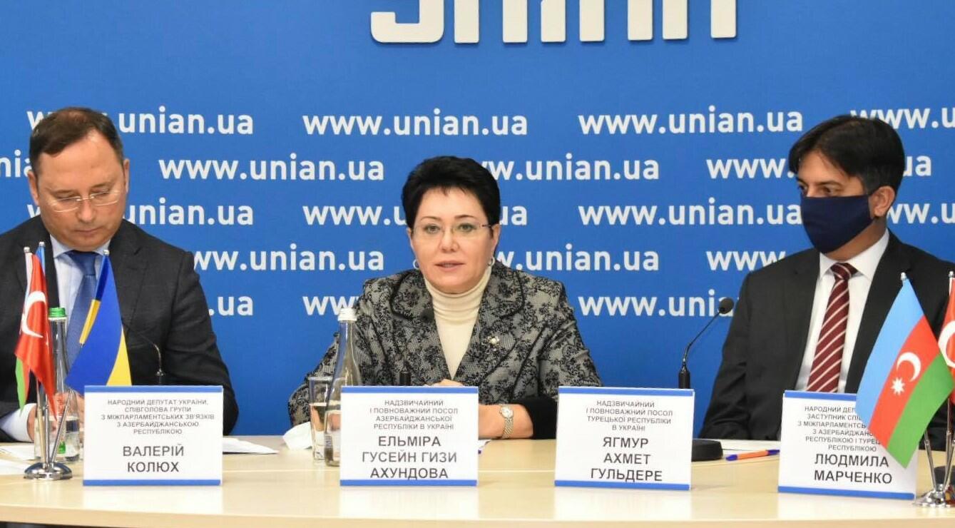 Axar.az xəbər verir ki, dəyirmi masada Türkiyənin Ukraynadakı səfiri Yağmur Əhməd Güldərə, Ukrayna Ali Radasının deputatları, siyasi, hərbi ekspertlər, Azərbaycanın diaspor rəhbərləri, yerli KİV nümayəndələri iştirak ediblər.