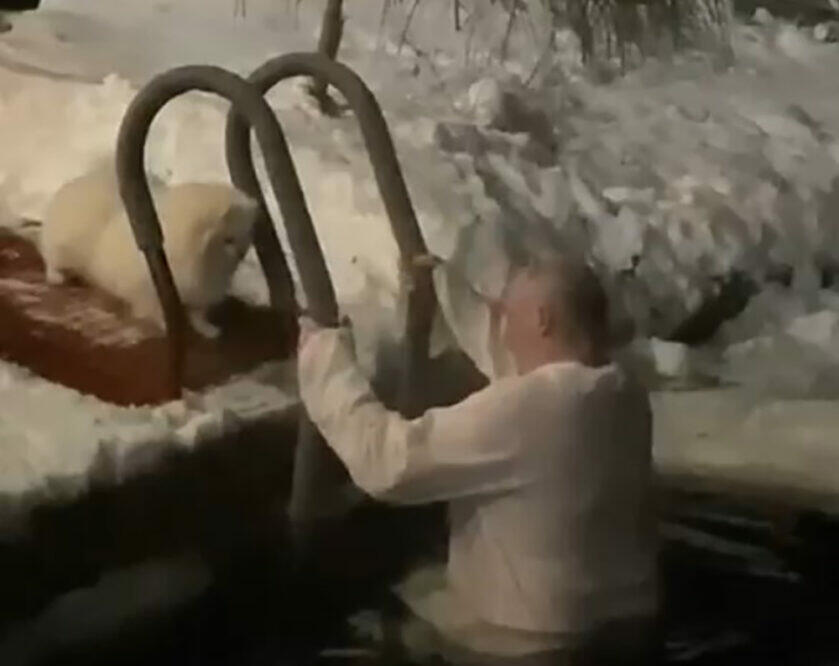 Axar.az xəbər verir ki, dövlət başçısı uzun ağ xalatda 3 dəfə xaç suyuna baş vurub.
