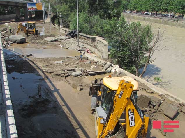 olan küçələrində təmizlənmə işləri dayanmır. Tiflisdə Kür çayının