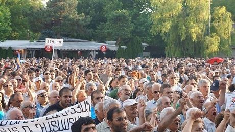 Hazırda İrəvanın Azadlıq meydanına bir neçə min insan toplaşıb.