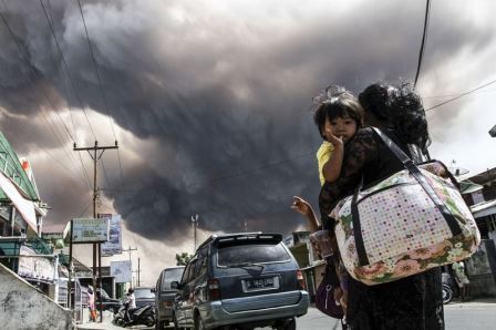 İndoneziyanın qərbində yerləşən Sinabunq vulkanı havaya qaz, kül və lava püskürməyə davam edir.