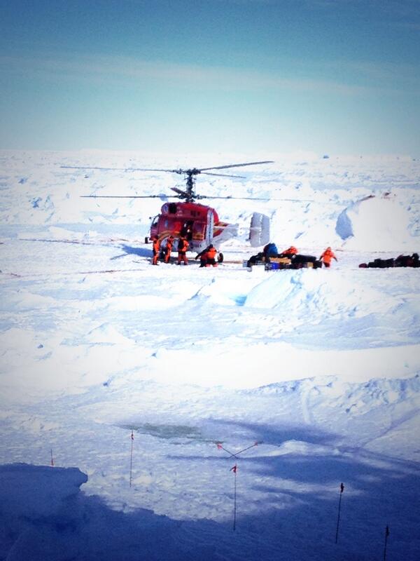 helikopteri buzlaqlar arasında qalmış gəminin sərnişinlərini