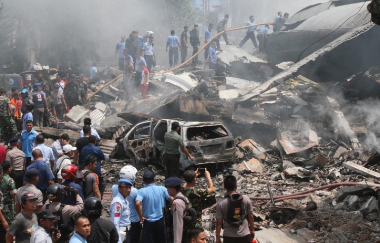İndoneziya ordusuna aid təyyarə Sumatra adasında hotel və evlərin üstünə düşərək ən azı 30 adamın ölümünə səbəb olub.