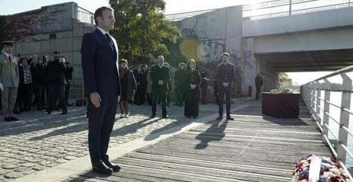 Makron soyqırımın baş verdiyi yerlərdən biri olan Bezons körpüsünün sahilinə gül çələngi qoyub. Bir dəqiqəlik sükutdan sonra Makron soyqırım qurbanların yaxınları ilə görüşüb.