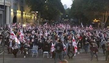 Gürcüstanın paytaxtı Tiflisdə müxalifət tərəfdarları "Qızılgül inqilabı"nın 18-ci ildönümü münasibətilə canlı zəncir yaradıblar.