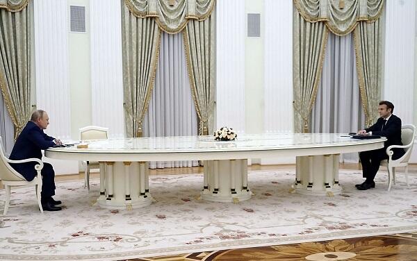 Axar.az xəbər verir ki, əvvəlki görüşlərin əksinə olaraq Putinin Makronla uzun masada görüşü və yaxınlaşmaması Fransa mətbuatında və sosial şəbəkələrdə əsas gündəm olub.