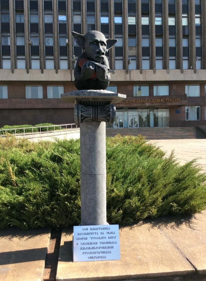 Ukraynanın Zaporojye şəhərinin mərkəzi meydanında, Vilayət Administrasiyasının yerləşdiyi binanın qarşısında Rusiya Prezidenti Vladimir Putinin gülməli heykəli qoyulub.
