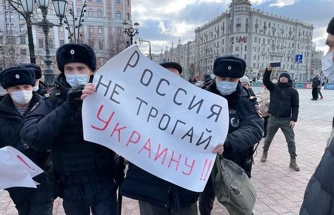 Axar.az xəbər verir ki, bu haqda “Ukrayna 24/7” Teleqram kanalı məlumat verib. Aksiya iştirakçıları “Ukrayna ilə müharibəyə yox”, “Bomba və mərmi əvəzinə məktəb və xəstəxana”, “Rusiya, Ukraynaya toxunma!” şüarları yazılan plakatlar qaldırıb.