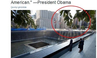 Faciədən bir neçə saat öncə ABŞ prezidenti Barak Obamanın "Twitter" hesabında paylaşdığı foto isə bu iddiaları daha da artırıb. Belə ki, Obama sentyabrın 11-də günorta saatlarında 11 sentyabr Nyu-York terrorunun anma mərasimində iştirak etməsinin əks olunduğu fotonu paylaşıb. Fotoda anım bareylefinin yaxınlığında iki böyük kran da görünür. Bu fotonun paylaşıldığı vaxtdan bir neçə saat sonra isə Məkkədə Bin Laden ailəsinə məxsus şirkətin quraşdırdığı kran aşaraq dəhşətli faciəyə səbəb olur.