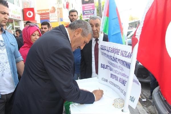 Türkiyə-Azərbaycan Dərnəkləri Dostluq Federasiyasının İqdırdakı "Azərbaycan evi" dərnəyinin sədri Sərdar Ünsal bildirib ki, bu bölgə İqdır əyalətinin mərkəzindən 39 km aralıda yerləşir: "Bölgənin giriş qapısına türk, ingilis, kürd və erməni dillərində "Xoş gəldiniz" və "Gülə-gülə" ifadələri yazılan lövhə asılıb. Biz həmin lövhənin yığışdırlıması üçün imzatoplama kampaniyası keçiririk. Ermənicə yazı bizi və Azərbaycandakı qardaşlarımızı narahat edir".