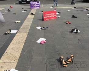 qurbanı olmuş qadınların ayaqqabıları nümayiş etdirilib.