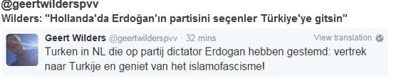 "Hollandiyada Ərdoğanın partiyasını seçən bütün türklər Türkiyə getsin və islamofaşizmin ləzzətini orada dadsınlar".
