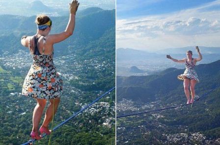 Axar.az xəbər verir ki, Diskey hündürdaban ayaqqabılarla yerdən 840 metr yüksəklikdə olan ip üzərində yeriyib.