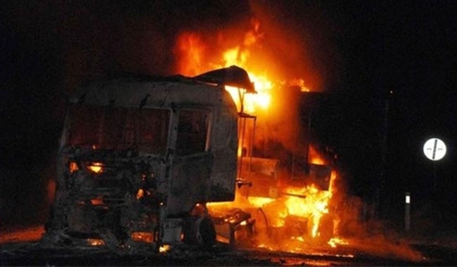 Türkiyənin Şırnak vilayətinin Cizrə rayonunda avtomobil dayanacağına düşən raketin partlaması nəticəsində 30 TIR yanaraq kül olub.