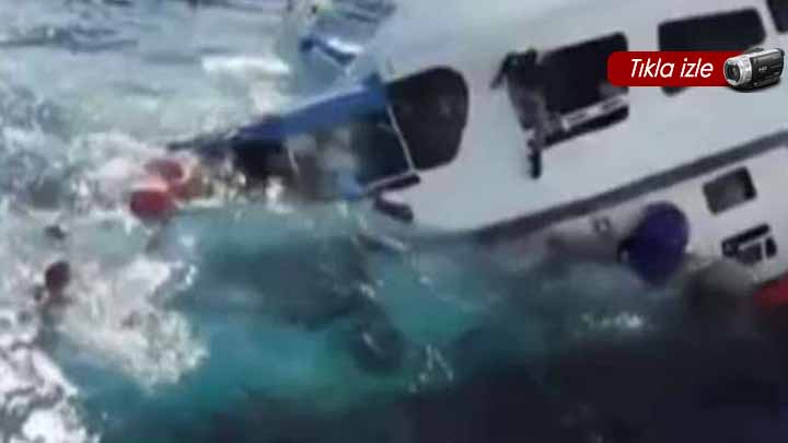 Turistlərin olduğu bir gəmi yanı üstə yatıb.