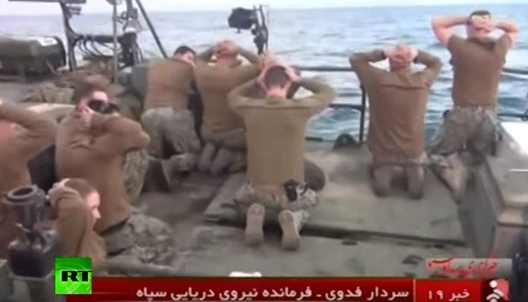 Axar.az xəbər verir ki, İran dövlət televiziyasında yayımlanan görüntülərdə ABŞ hərbçilərinin diz çökdükləri və əllərini başlarının arxasında daraqladığı əks olunub.