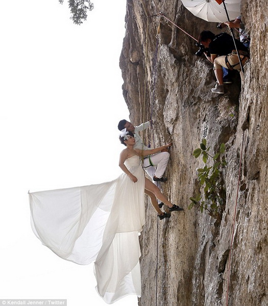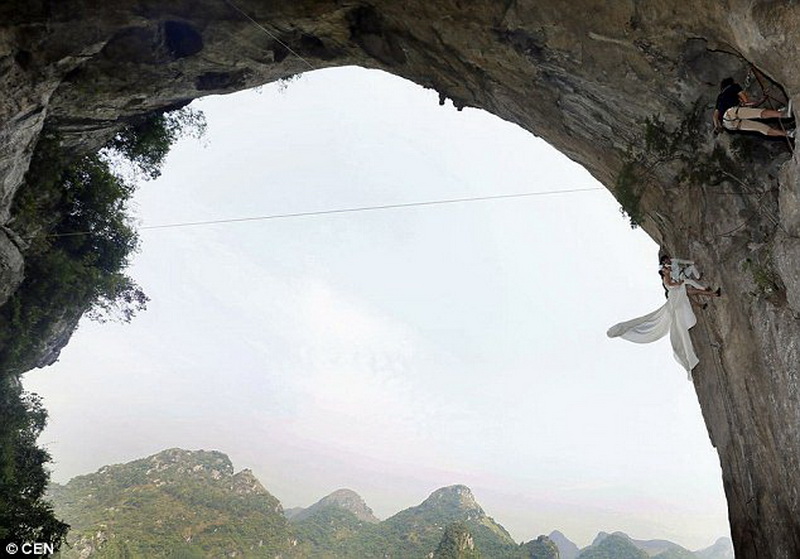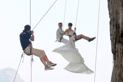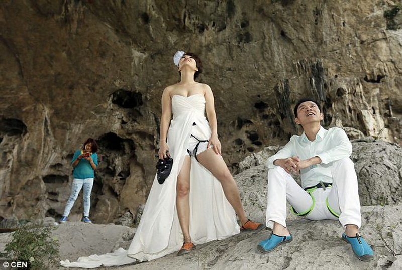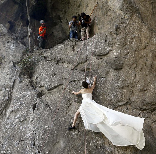 "Metro" qəzetinin yaydığı məlumata görə, çinli yeni evlilər toy fotosessiyasını qayanın dik yamacına dırmaşaraq ediblər. Gəlin və bəy ekstremal idman növlərinin azarkeşləridir. İdeyaya səbəb də məhz bu idmana olan sevgi olub.