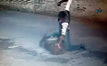 Kişi qadının arxasınca düşüb və qəfil arxadan ona hücum edib. Kişi qadını yerə yıxıb və ona bir neçə yumruq zərbəsi endirib. Daha sonra onun saçından tutaraq başını yerə çırpıb.