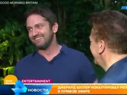 qəhrəmanı Cerard Batler canlı yayımda jurnalisti nokauta