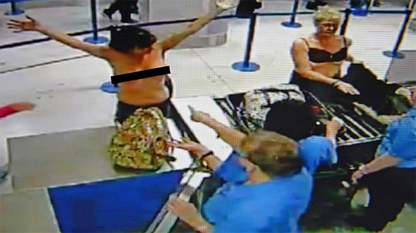 Təhlükəsizlik işçilərinin xəbərdarlığına əynindəki bütün geyimləri çıxararaq cavab verən qadının büsqalterini çıxarmasını ətrafdakı adamlar təəccüb içində izləyib. Kelli Hadfild-Hayd "Aeroportda dincliyi pozmaq"da suçlanaraq məhkəməyə verilib.