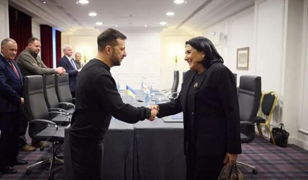 Ukrayna Prezidenti Vladimir Zelenski Parisdə Gürcüstan Prezidenti Salome Zurabişvili ilə görüşüb.