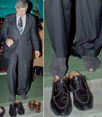üçün ayaqqabılarını çıxaran Vulfovitsin hər iki corabının cırıq