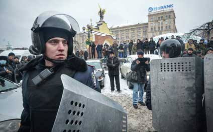 Kiyevin mərkəzində Müstəqillik meydanında hərbçilərə və "Berkut"