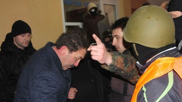 Ukraynanın Lutsk şəhərində aksiyalar zamanı şəhər meri vəhşicəsinə döyülüb.