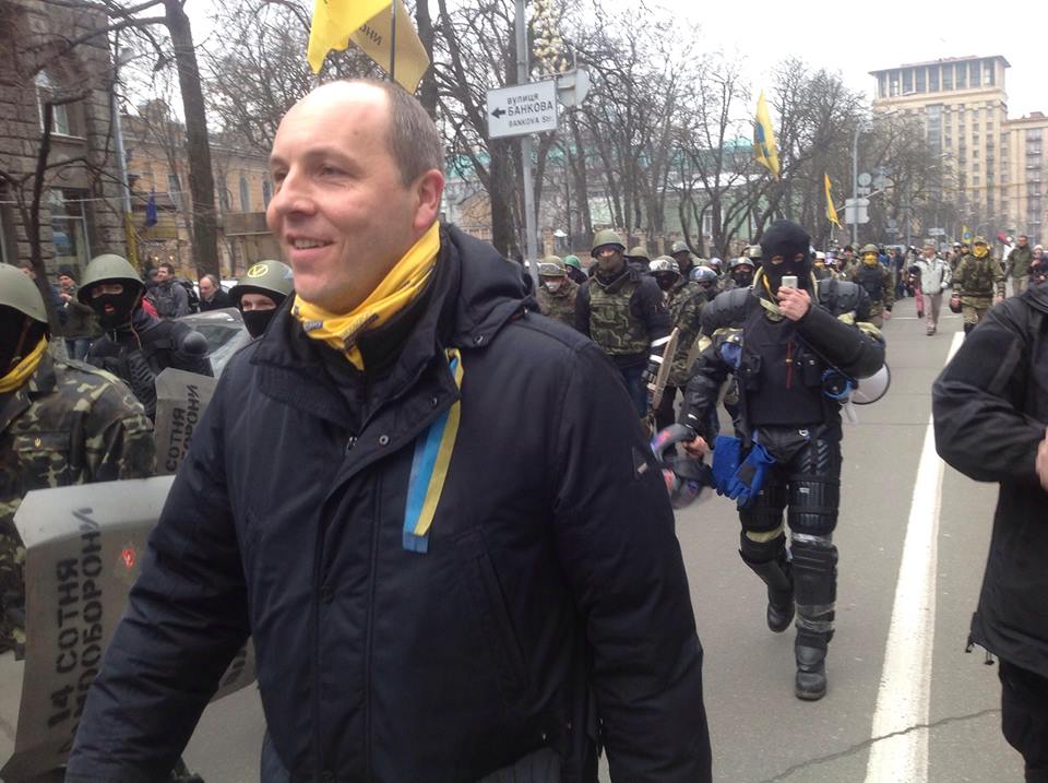O, etirazçıların Prezident Administrasiyası, Nazirlər Kabineti və Radanın binansına nəzarət etdiklərini bildirib. Komendant bu binalara nəzarəti "Sağ sektor"un döyüşçülərinin həyata keçirdiyini bildirib. A.Parubiy həmçinin daxili qoşunların bir sıra döyüşçülərinin də onlarla birgə olduğunu deyib. O digər polisləri də onlara qoşulmağa çağırıb. A.Parubiy artıq Kiyevə nəzarət etdiklərini söyləyib.