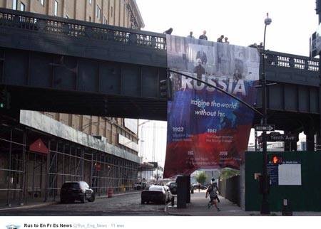Amerika Birləşmiş Ştatlarının əhali sayına görə ən böyük şəhəri olan Nyu Yorkda Rusiya əleyhinə böyük bir banner peyda olub.