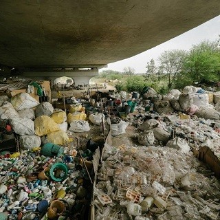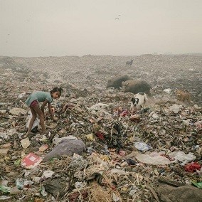 Dehlinin şimalındakı kənd açıq havada nəhəng zibil tullantısı