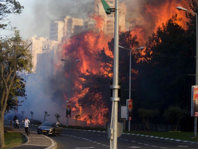 İranın raket zərbələrindən sonra Hayfa şəhərində bir sıra ərazilərdə güclü yanğın baş verib.