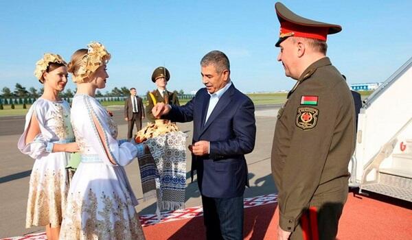 Axar.az xəbər verir ki, onu Belarusun müdafiə naziri general-leytenant Viktor Xrenin qarşılayıb.