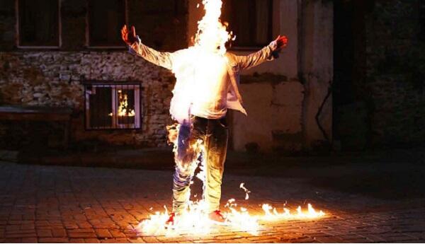 Məlumata görə, polis əməkdaşı minik avtomobilində axtarış apardığı zaman sürücü buna etiraz edib və polisin üzərinə benzin tökərək onu yandırıb.