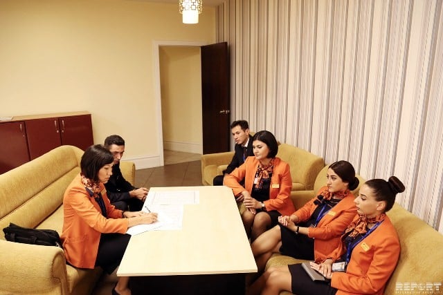 Təyyarə salonunu uçuşa bələdçilər hazırlayır. Hər zaman səliqəli