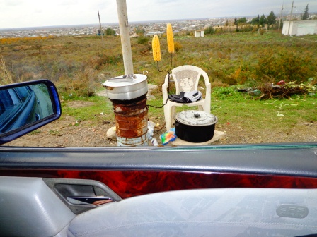 Atbulaq kəndini keçirik. Yolun kənarında plastik kiçik