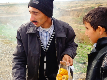 satıcı oğlan qarğıdalısına bəy tərifi verir: "Ves Azərbaycanı gəz,