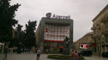 "Azercell"in, şüşələrlə əhatə olunmuş hissədə isə "Kapital bank"ın