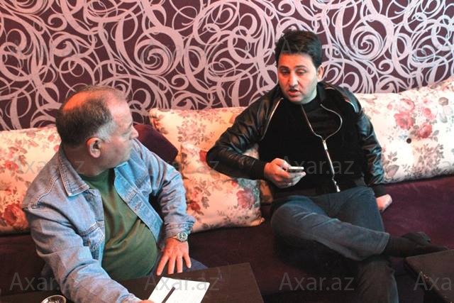 müğənni Mir Kamil Kamilov foyedə oturub çay içirlər. Hər biri ilə