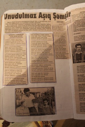 Aşıq Şəmşirlə şəkilləri var. Onunla deyişmələrini də göstərir.