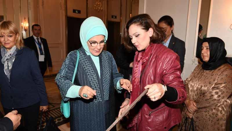 Kult.az xəbər verir ki, azərbaycanlı rəssam, Türkiyənin Mərmərə Universitetinin İncəsənət tarixi üzrə doktorantı Tünzalə Məmmədzadə bu günlərdə Bakıya səfər edən Türkiyə prezidenti Rəcəb Tayyib Ərdoğanın həyat yoldaşı Əminə Ərdoğana özünün ali qonağın şərəfinə layiq unikal əl işlərindən birini hədiyyə edib.