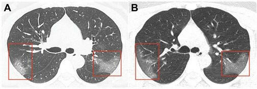 Jurnalda dərc edilmiş təsvirlər Çinin Lançjou şəhərində 39 dərəcə temperaturla xəstəxanaya yerləşdirilmiş 33 yaşlı qadının kompüter tomoqrafiyası nəticəsində alınıb.