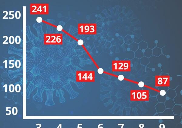 Qeyd olunub ki, avqustun 3-də qeydə alınan yoluxma sayı 241 olubsa, avqustun 9-da bu rəqəm 87-yə düşüb.