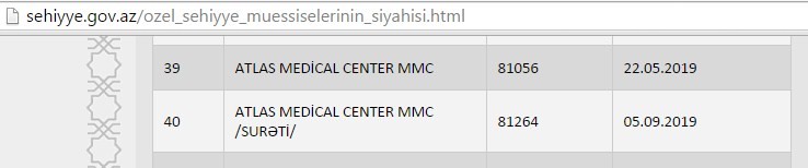 klinikalar arasında "Atlas Medical Center"in də adı var. Nöqsanlar