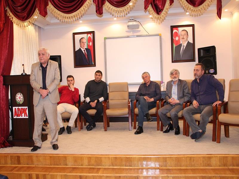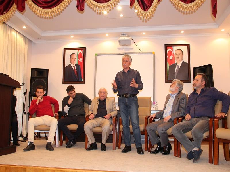 Sonra “Dolu” filminin yaradıcı heyəti – ssenari müəllifi Aqil Abbas, əsas rolların ifaçıları Məmməd Səfa, Rza Rzayev, Şamil Süleymanov, Elvin Əhmədov, Cavanşir Hadıyev müəllim və tələbələrin filmlə bağlı suallarını cavablandırıblar. Sonda tələbələrə Aqil Abbasın kitabları paylanıb.