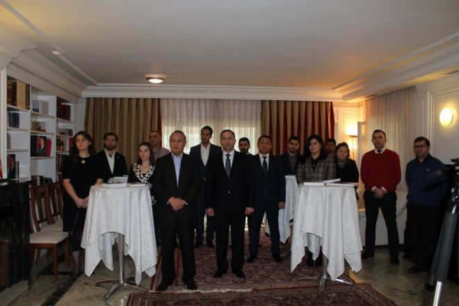 Axar.az xəbər verir ki, əvvəlcə səfirliyimizdə ulu öndər Heydər Əliyevin xatirəsinə yaradılmış guşənin önünə gül dəstəsi düzülüb. Ulu Öndərin əziz xatirəsi birdəqiqəlik sükutla yad edilib.