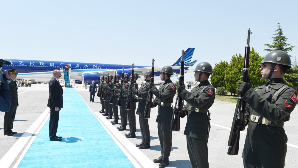Axar.az xəbər verir ki, Azərbaycanın və Türkiyənin dövlət bayraqlarının dalğalandığı İstanbulun Atatürk Beynəlxalq Hava Limanında Prezident İlham Əliyevin şərəfinə fəxri qarovul dəstəsi düzülüb. Fəxri qarovul dəstəsinin rəisi Prezident İlham Əliyevə raport verib.