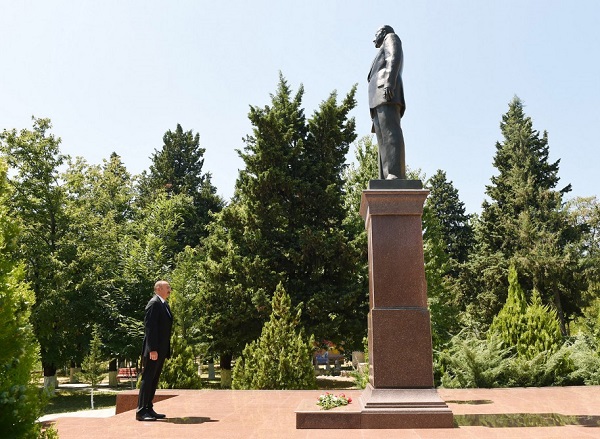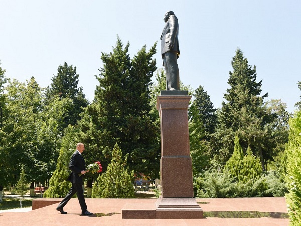 Axar.az xəbər verir ki, dövlət başçısı əvvəlcə ulu öndər Heydər Əliyevin adını daşıyan mədəniyyət və istirahət parkında dahi şəxsiyyətin abidəsini ziyarət etdi, önünə gül dəstəsi qoydu.