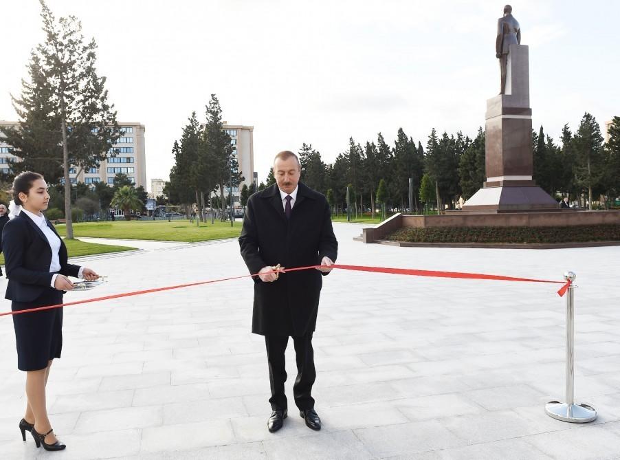 Dövlət başçısı ulu öndər Heydər Əliyevin abidəsi önünə gül dəstəsi qoyub.